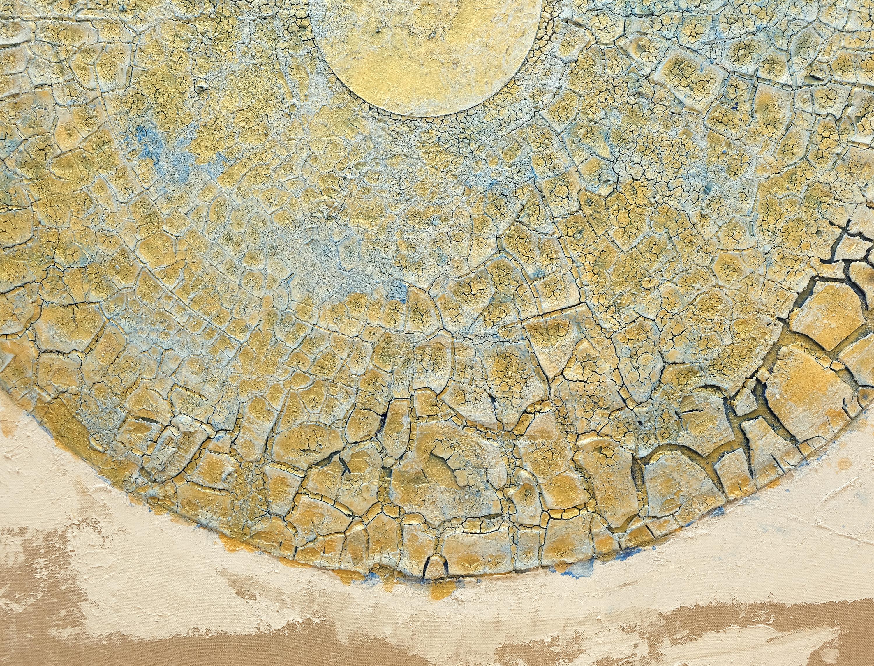 clay, concrete, pigments, acrylic paint and gold on canvas