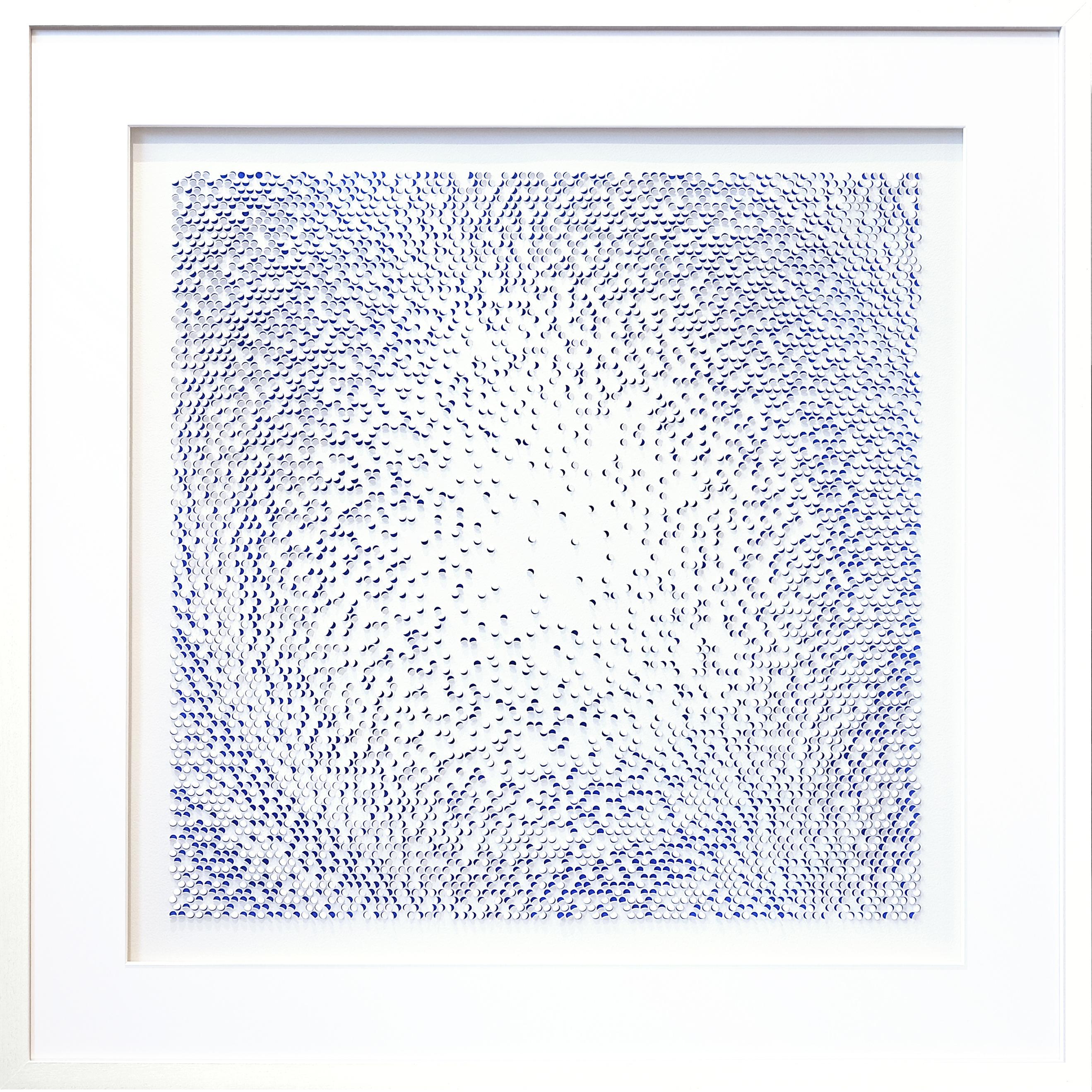 Stanzprägung in Bütten auf blau koloriertem Bütten
