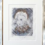 von Hand kolorierte und mit Blattgold erhöhte Kaltnadelradierung auf Japanpapier